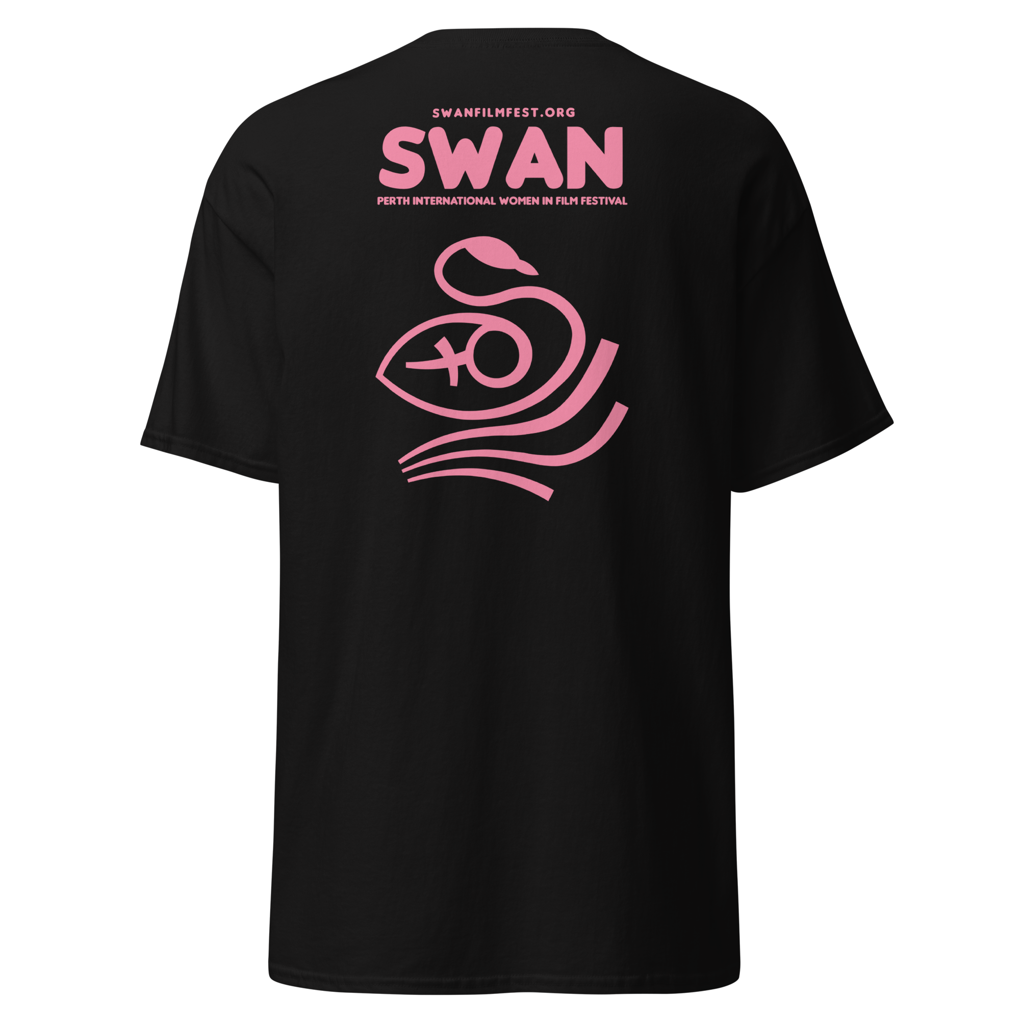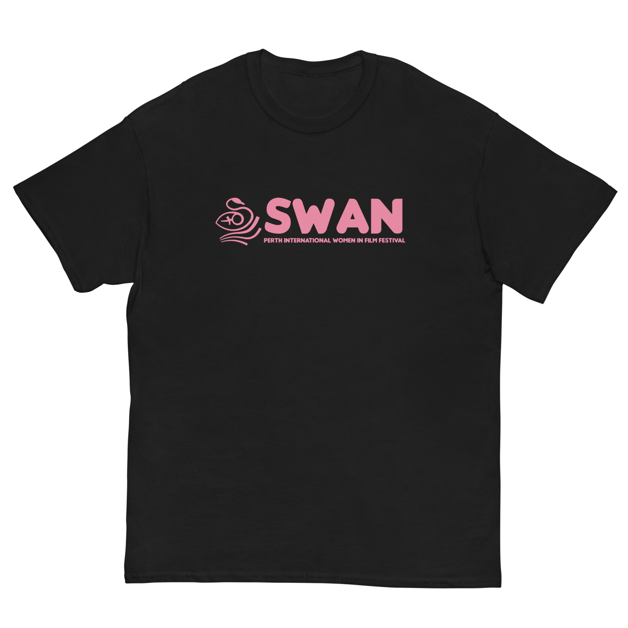 Support Swan all year round with our basic Swan shirt with logo front and back. A great black shirt to wear on set or a white shirt basic for the wardrobe.